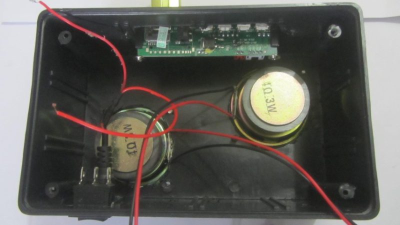 نکات:ماژول pam8403 با تغذیه 2.5 تا 5 ولت کار میکند.اما ماژول فلش خور با زیر 5 ولت کار نمی کند.بهترین نتیجه استفاده از ماژول صوتی بلوتوث(قیمت حدود 15 تا 25 تومان) است که با تغذیه زیر 4 ولت کار میکند و میتوان با باطری امپر بالای موبایل نتیجه خوبی گرفت و با به کار گیری ماژول شارژر ،باطری را با هر شارژر موبایلی شارژ کرد.همچنین وزن اسپیکر بسیار کمتر میشود.