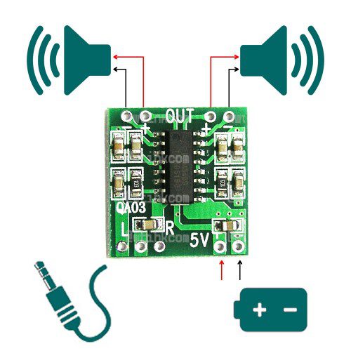 نکته دیگر اینکه ماژول pam8403 توان 3 وات ارایه می دهد!بنابراین انتظار زیادی نداشته باشد!اما کیفیت پخش عالی ونویز بسیار کم از ویژگی های ان هست.برای ارتقا میتوان کیت امپلی فایر 5 وات استفاده کنید.و درنهایت لذت از کاردستی تون!